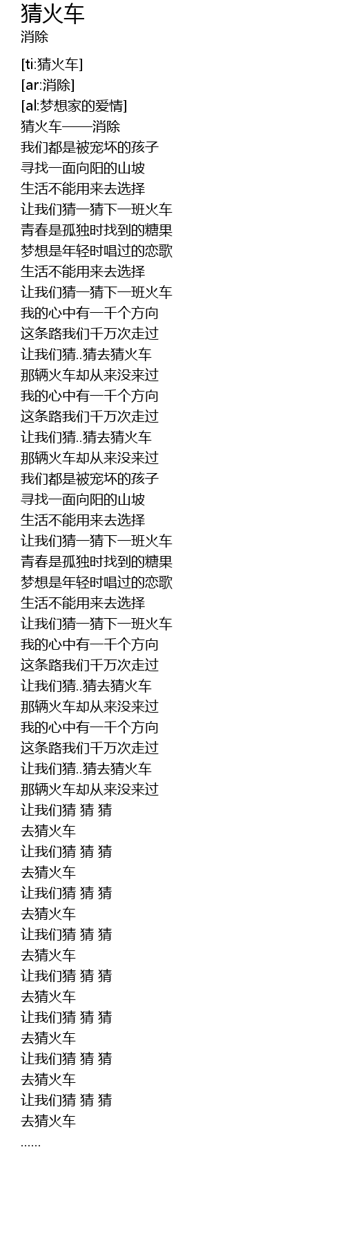 | [04:04.25] | 去猜火车 |