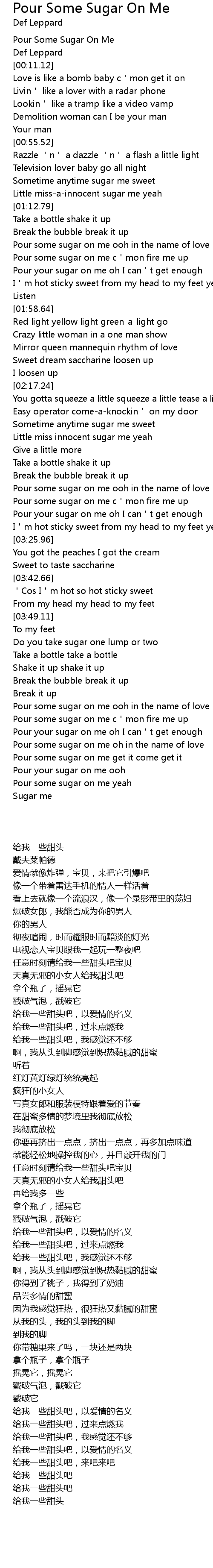 | [02:45.93] | Pour some sugar on me ooh in the name of love |