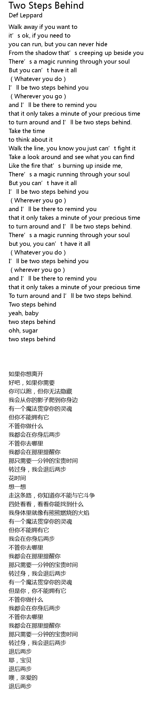| [03:48.230] | To turn around and I' ll be two steps behind. |