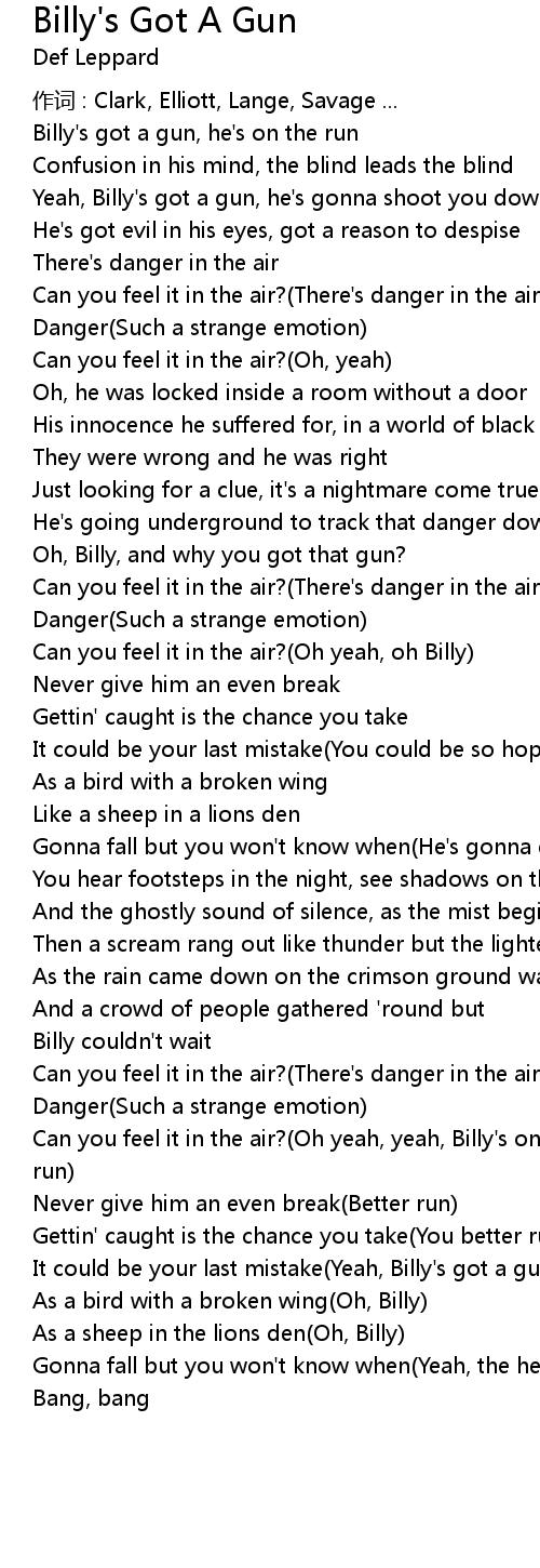 | It could be your last mistake Yeah, Billy' s got a gun | |
