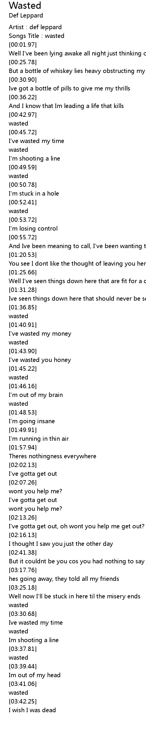 | [03:28.50] | Well now I'll be stuck in here til the misery ends |