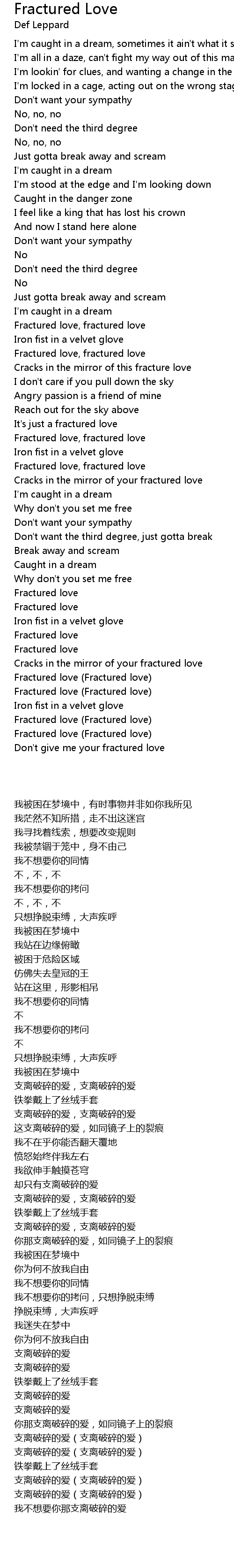 Don't give me your fractured love |
