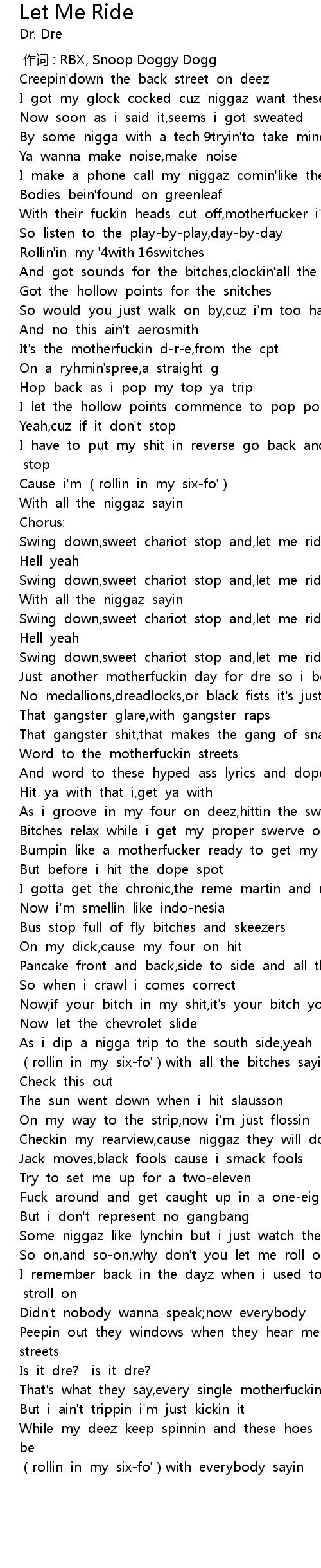 | Song | Let Me Ride |