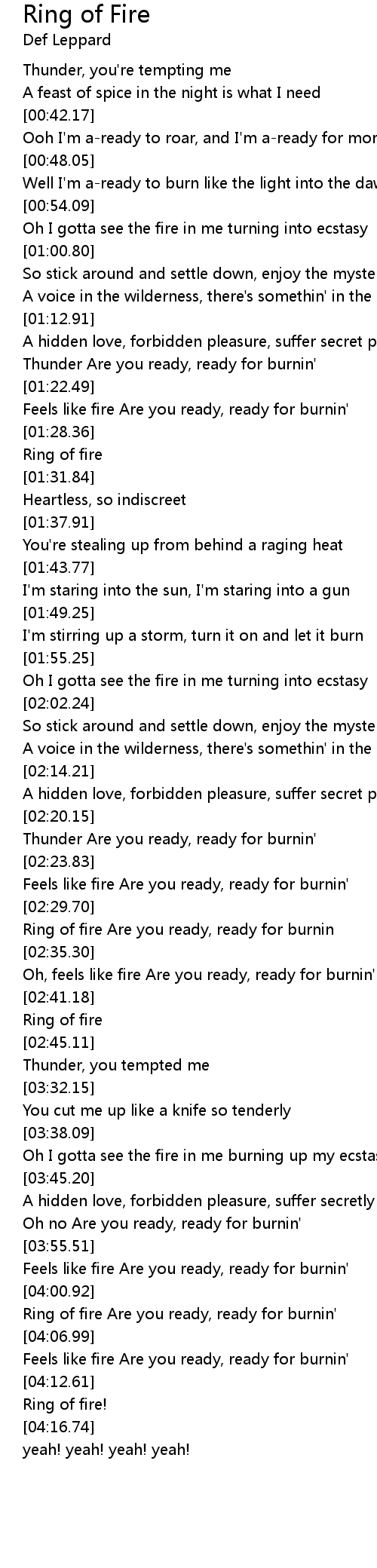 Ring of fire Are you ready, ready for burnin |