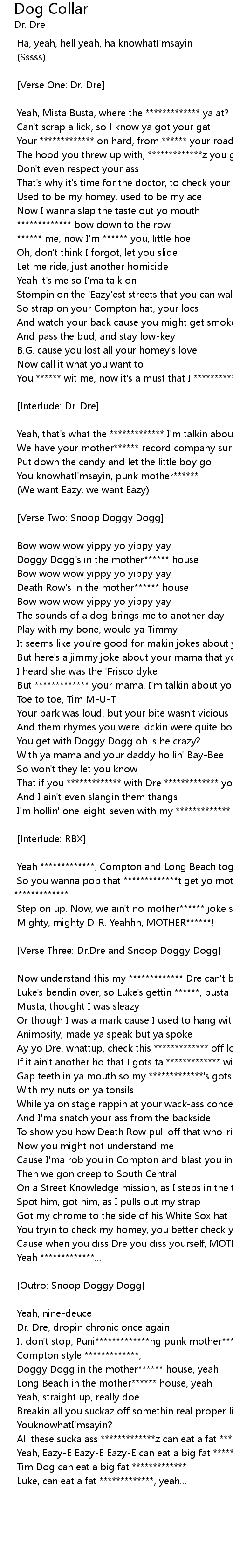 That if you ************* with Dre ************* you're ****** wit Death Row |