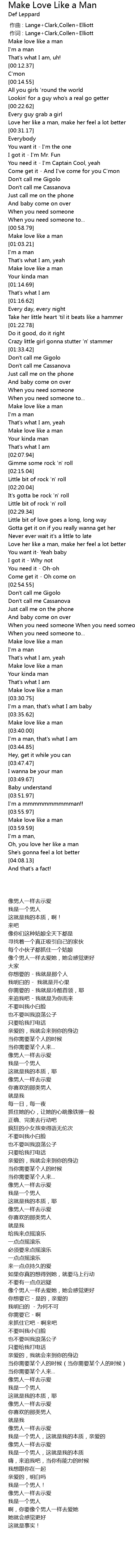 | [01:59.75] | Make love like a man |