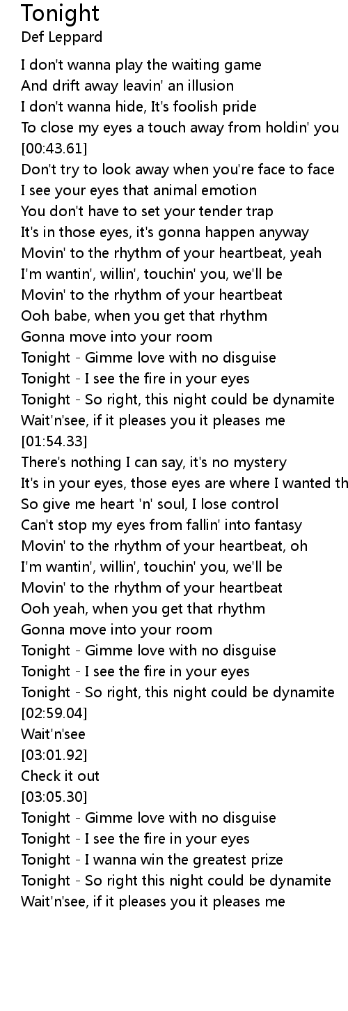 Tonight - I see the fire in your eyes |