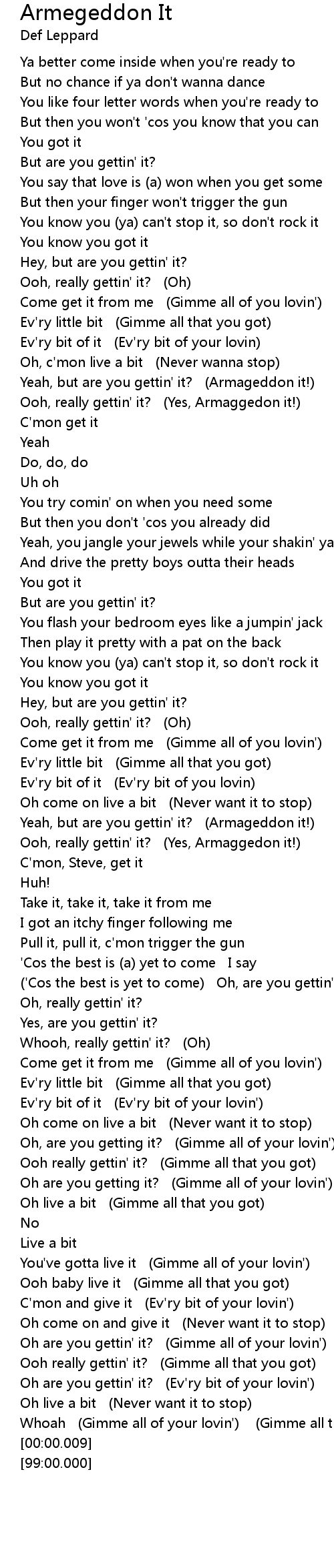 Yeah, but are you gettin' it? (Armageddon it!) |