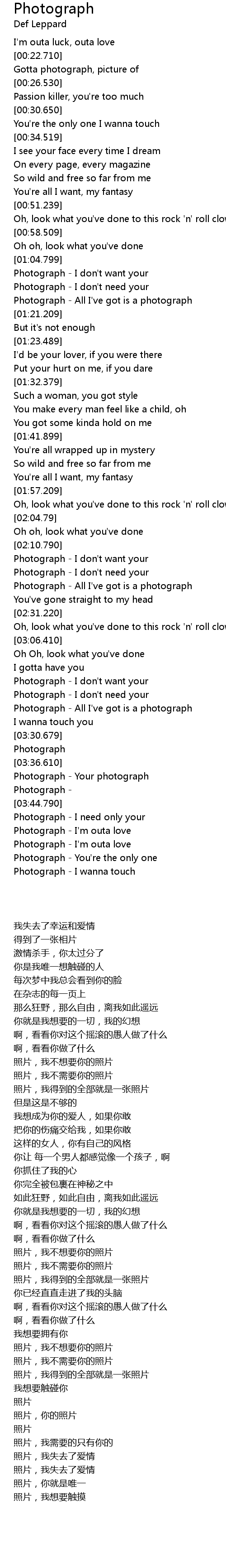 | [03:18.760] | Photograph - I don't need your |