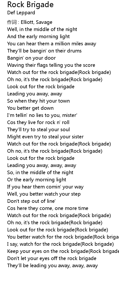 | You better watch for the rock brigade Rock brigade | |
