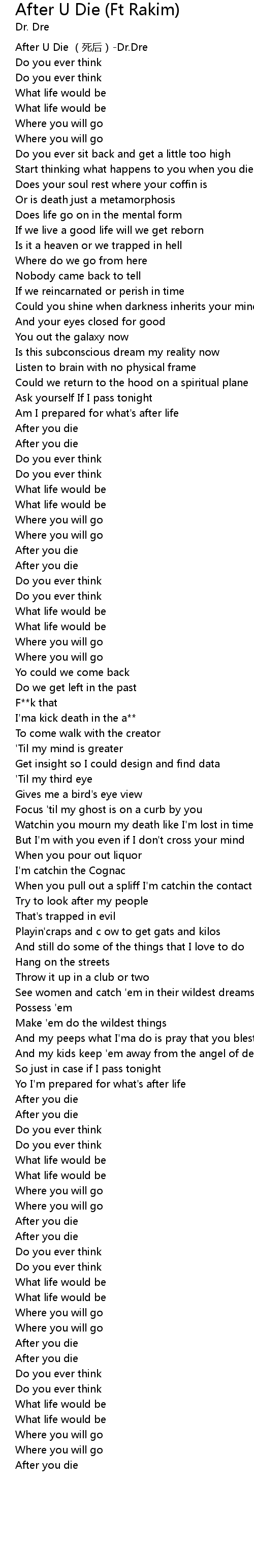 | [00:00.00] | After U Die sǐ hòu Dr. Dre |