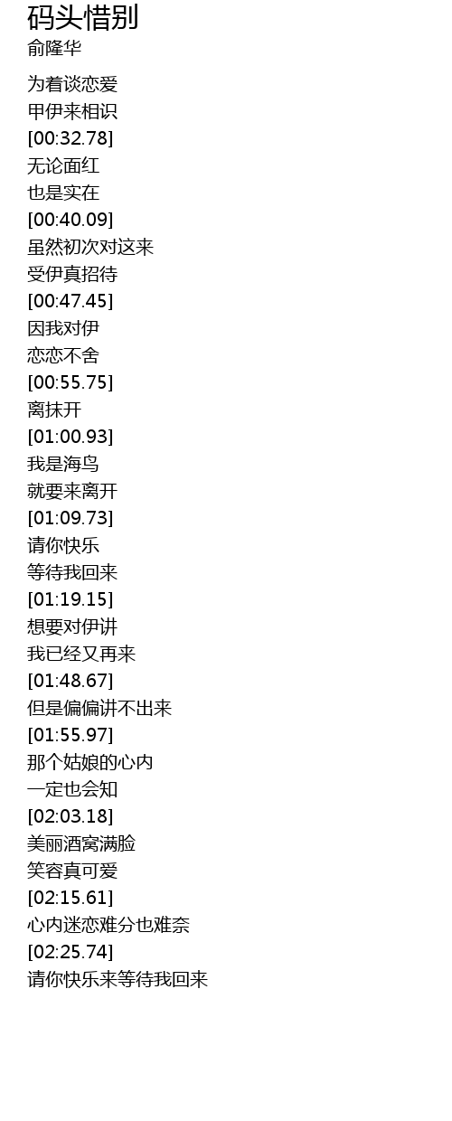 | [02:28.06] | 请你快乐来等待我回来 |