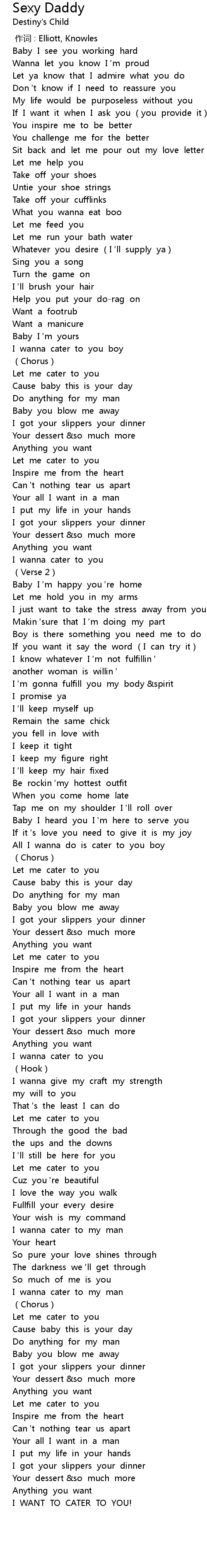 | [04:01.98] | I WANT TO CATER TO YOU! |
