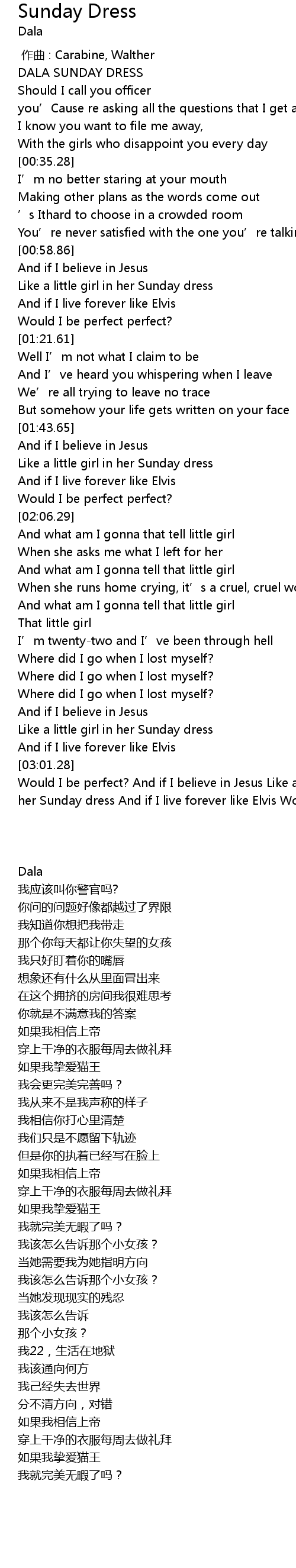 | [00:00.91] | DALA SUNDAY DRESS |