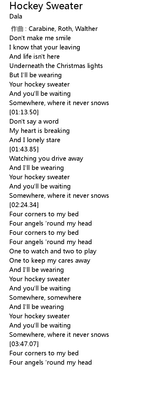 | [00:49.55] | Your hockey sweater |