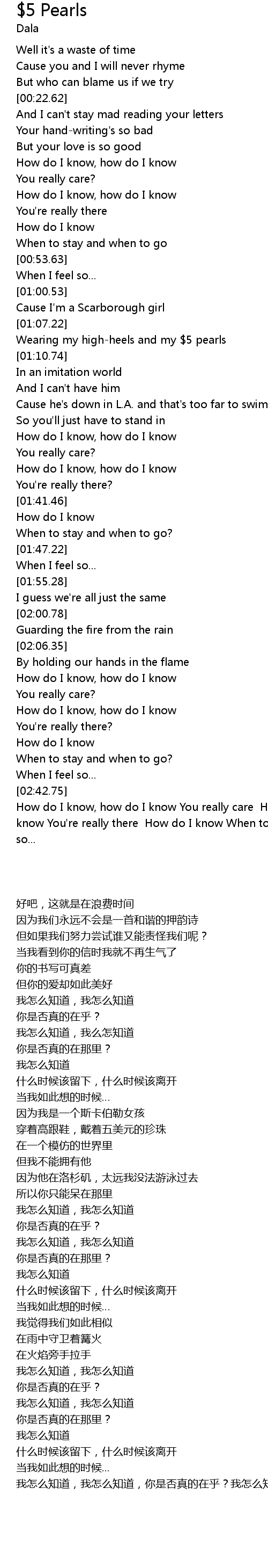How do I know, how do I know You really care How do I know, how do I know You're really there How do I know When to stay and when to go When I feel so... |