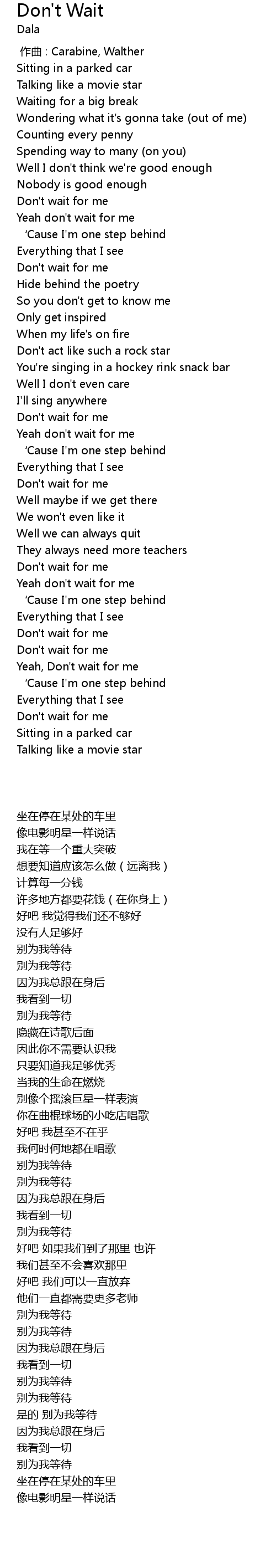 | [01:31.100] | Yeah don' t wait for me |