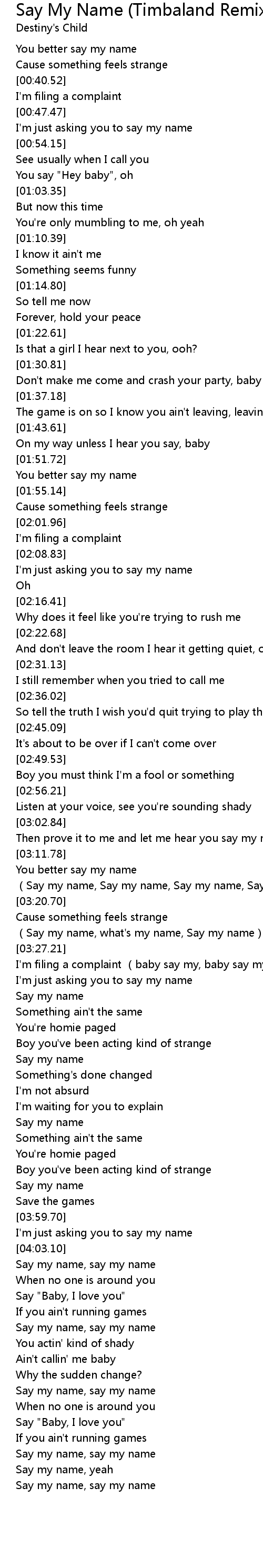 | [03:16.77] | (Say my name, Say my name, Say my name, Say my name) |