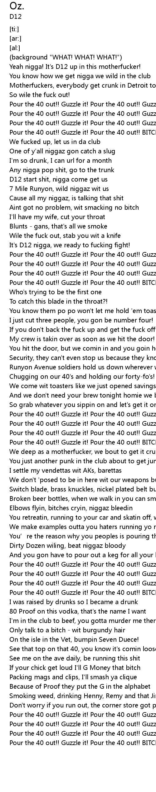 | [02:38.24] | Pour the 40 out!! Guzzle it! Pour the 40 out!! BITCH!!! |