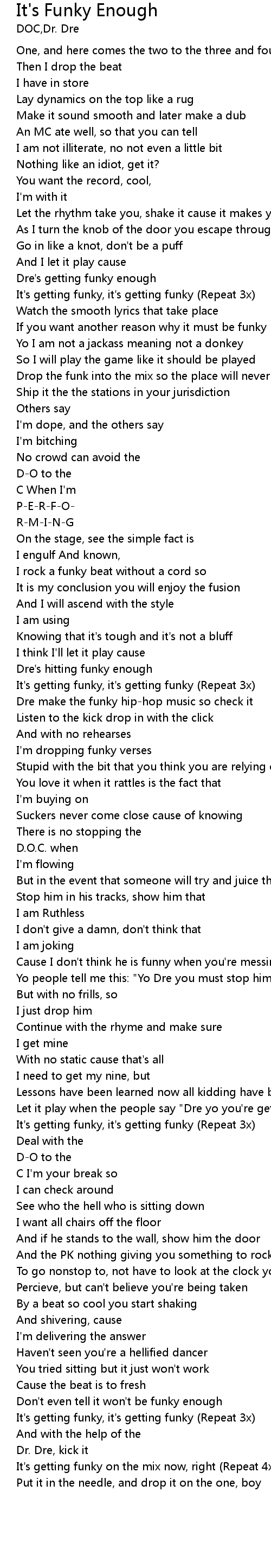 | Let it play when the people say "Dre yo you're getting funky enough" | |