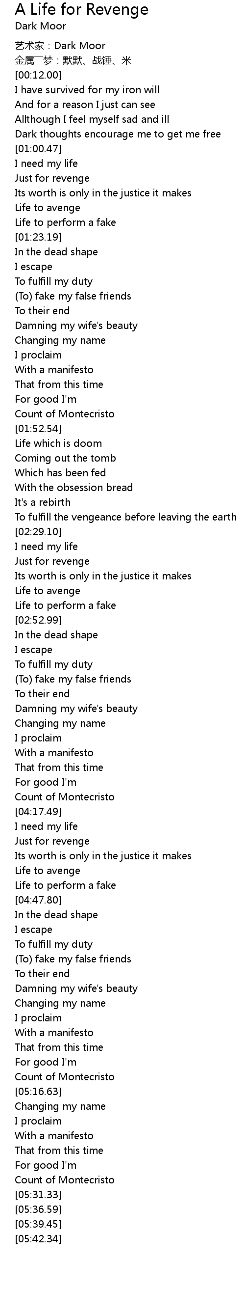 | [01:15.31] | Life to avenge |