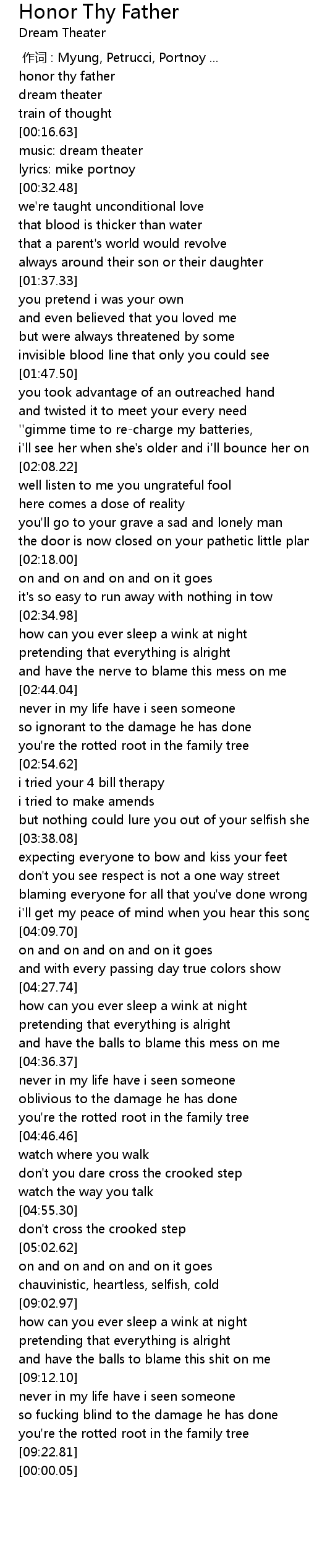 | [00:00.00] | 作词 : Myung, Petrucci, Portnoy ... |