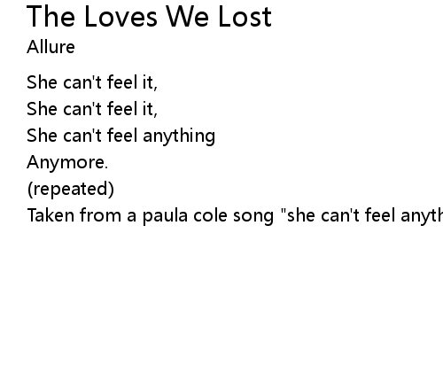 | Taken from a paula cole song "she can't feel anything anymore |