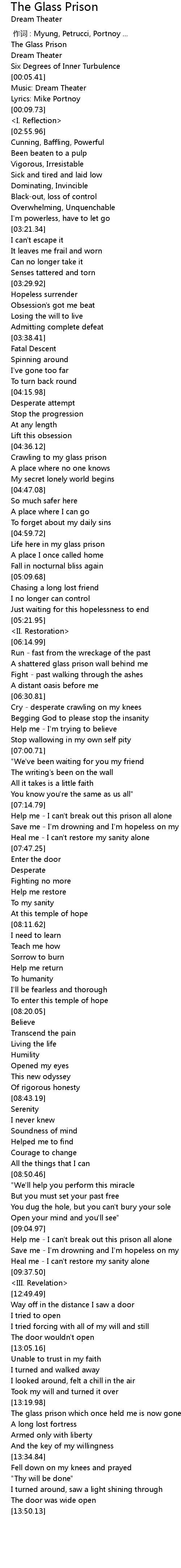 | [00:00.00] | 作词 : Myung, Petrucci, Portnoy ... |