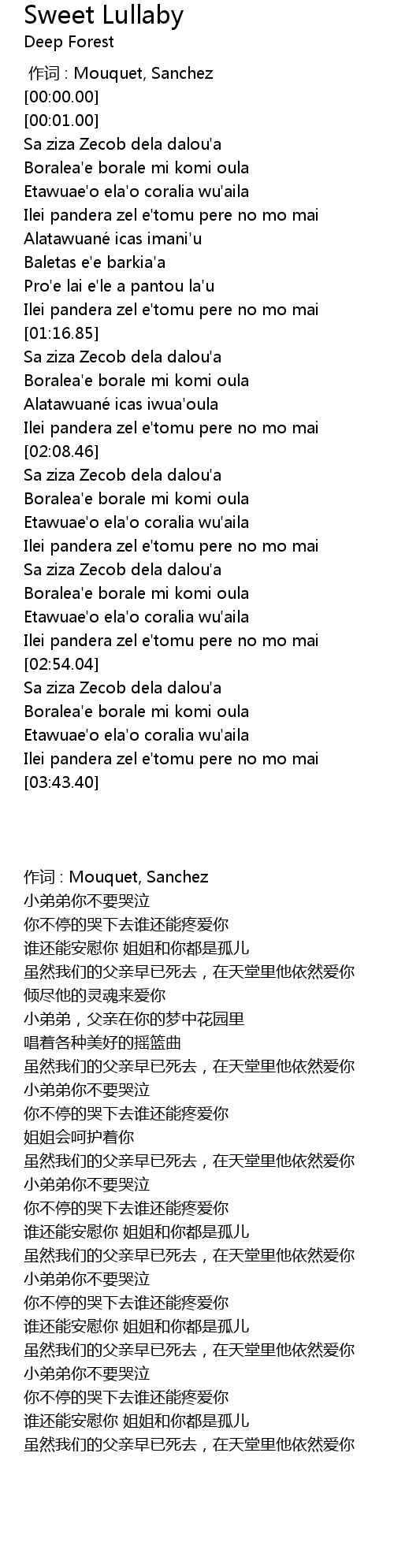 | [00:00.00] | 作词 : Mouquet, Sanchez |