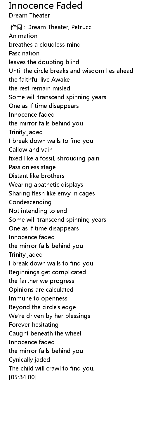 | [00:00.00] | 作词 : Dream Theater, Petrucci |