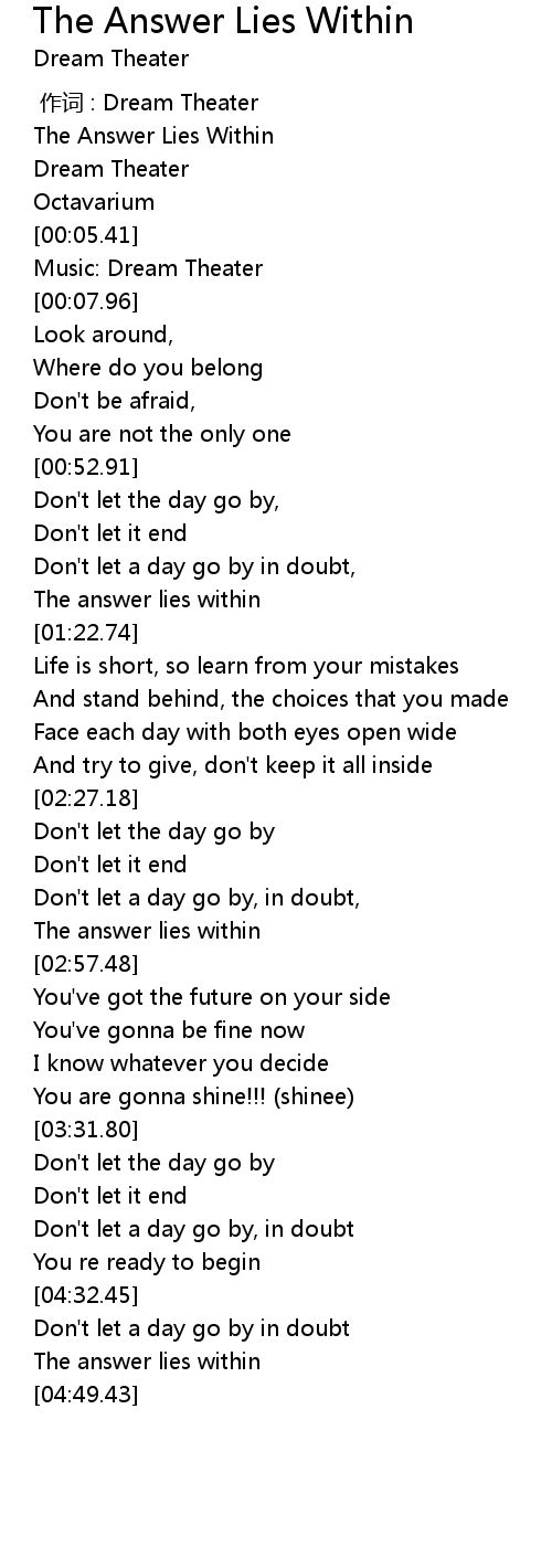 | [00:01.05] | The Answer Lies Within |