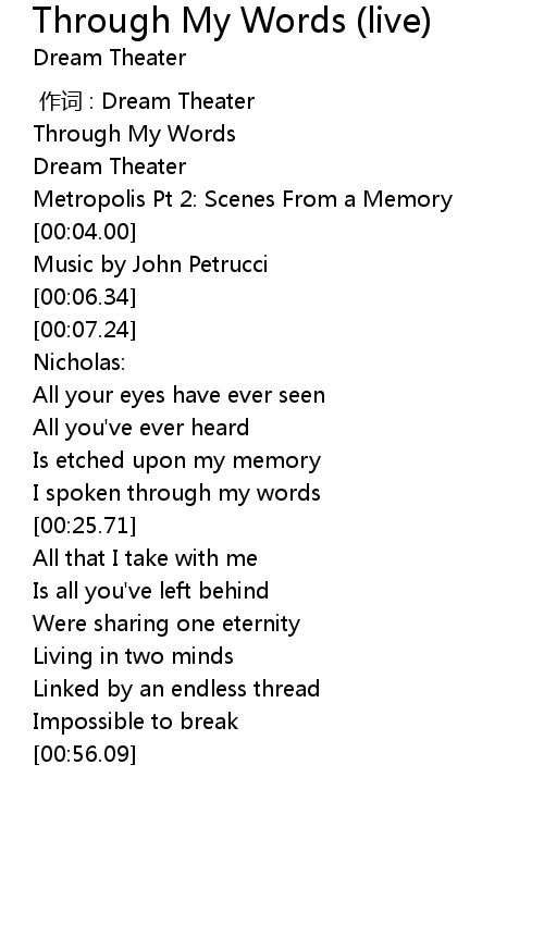 | [00:00.00] | 作词 : Dream Theater |