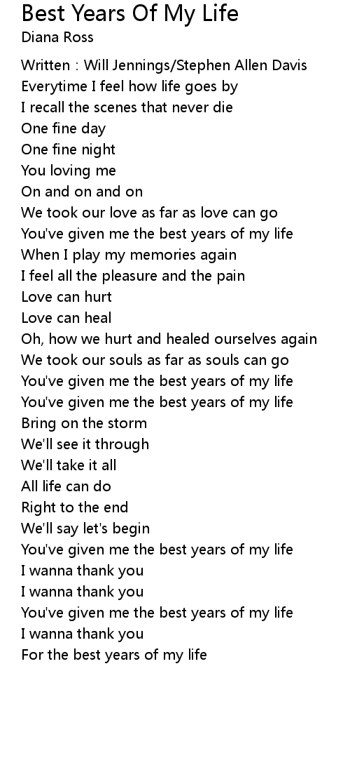 | For the best years of my life |