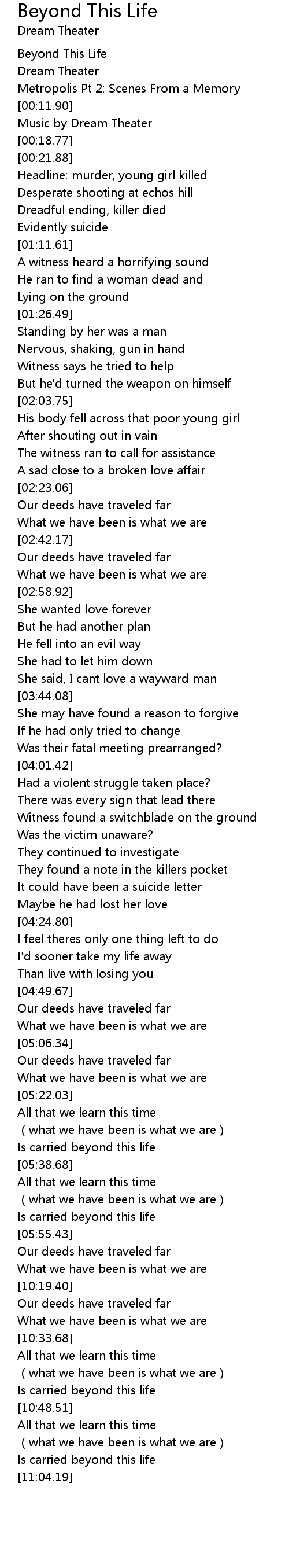| [00:03.03] | Beyond This Life |