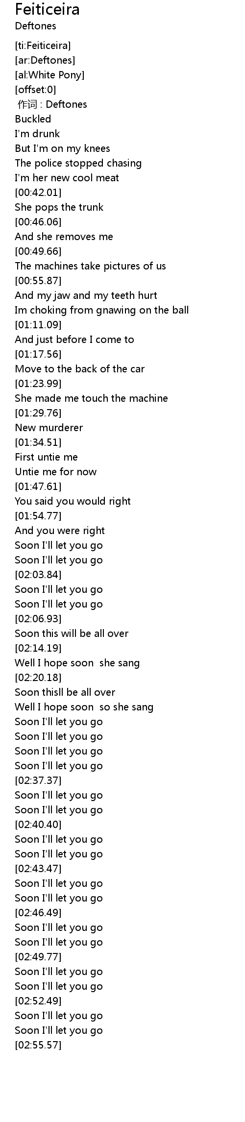 | [02:51.42] | Soon I'll let you go |