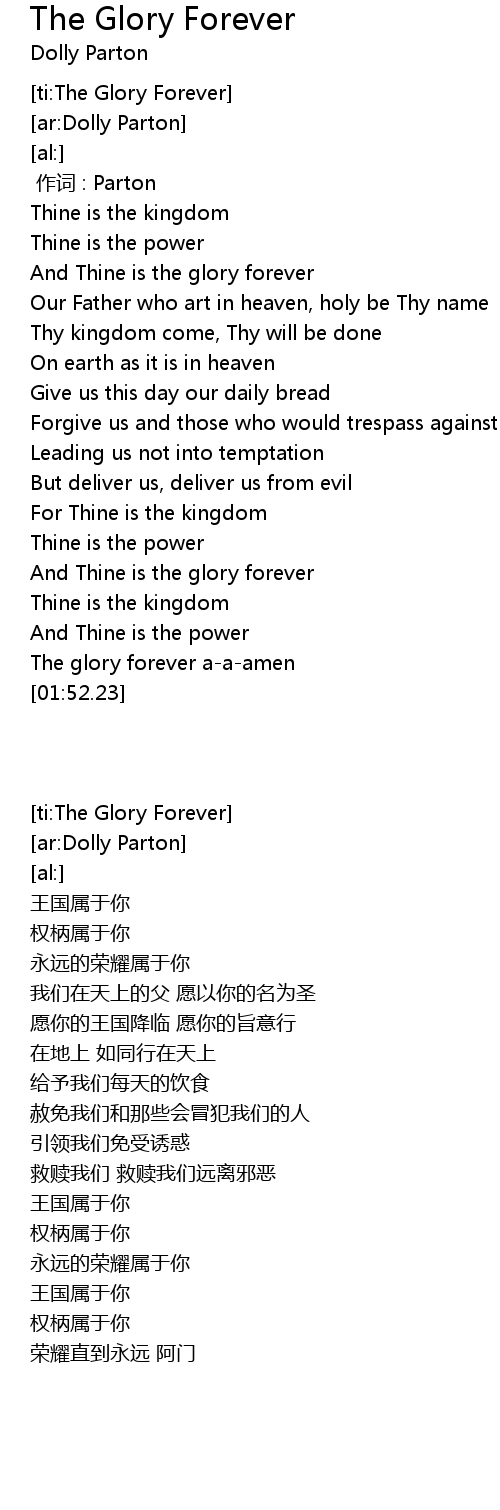 | [01:23.79] | And Thine is the glory forever |