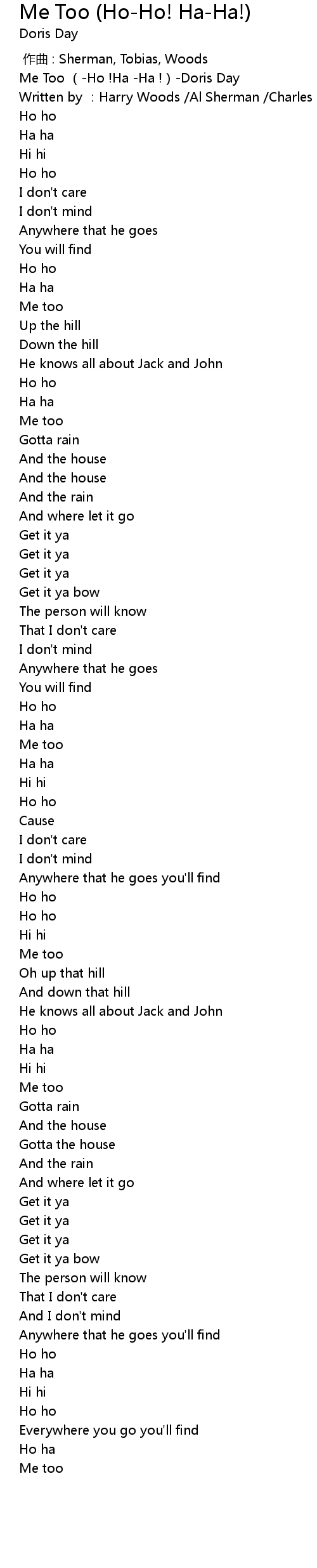| [00:00.00] | Me Too Ho ! Ha Ha ! Doris Day |