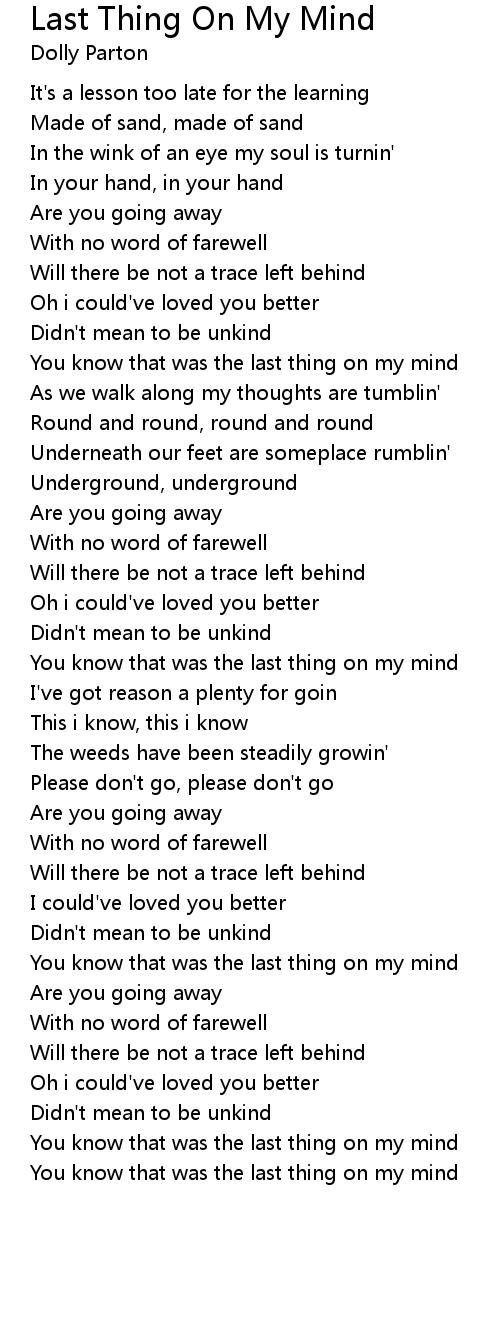 You know that was the last thing on my mind |