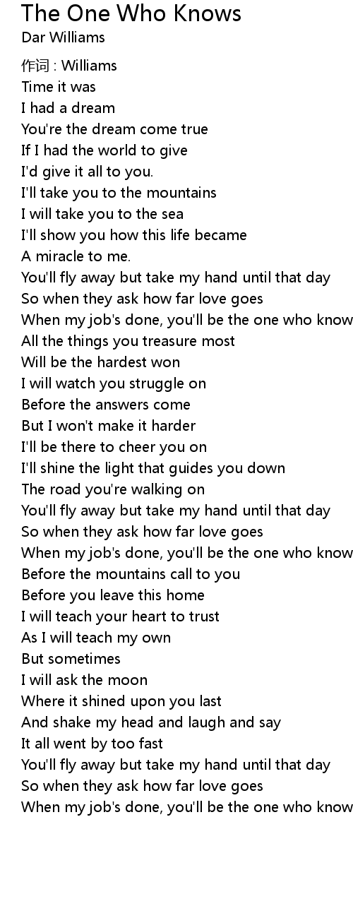 | Song | The One Who Knows |