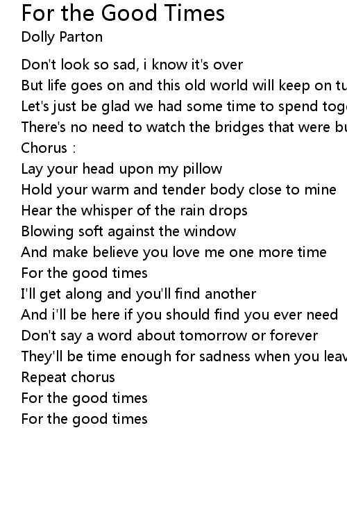 | Song | For the Good Times |