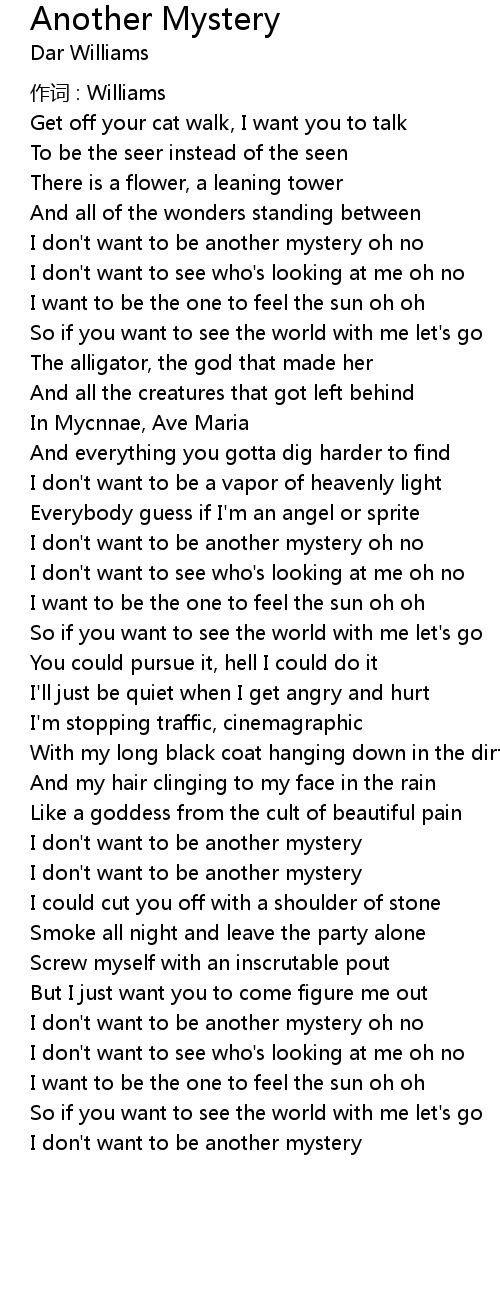 | I don' t want to be another mystery oh no | |