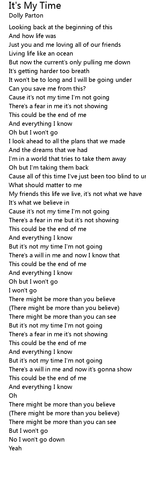 But it's not my time I'm not going |