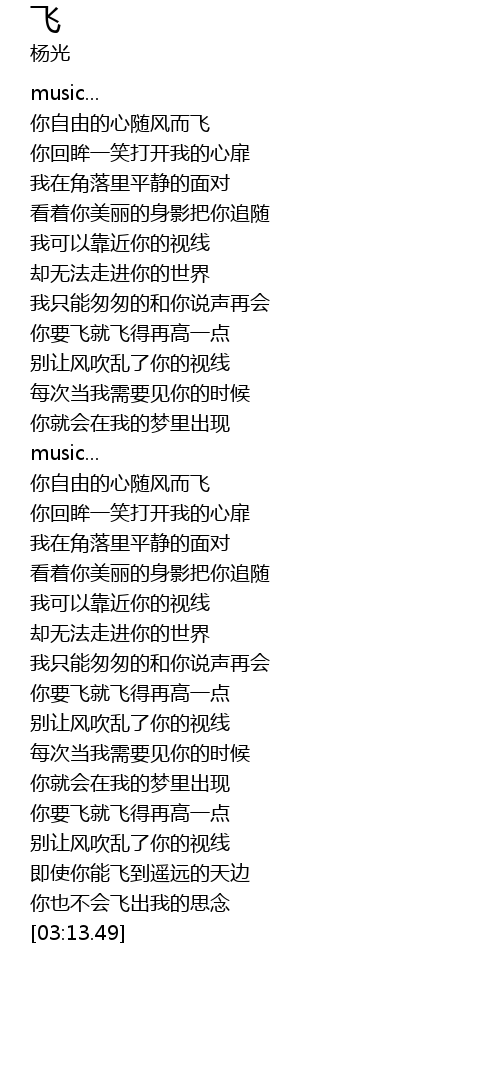 | [00:19.11] | 你自由的心随风而飞 |