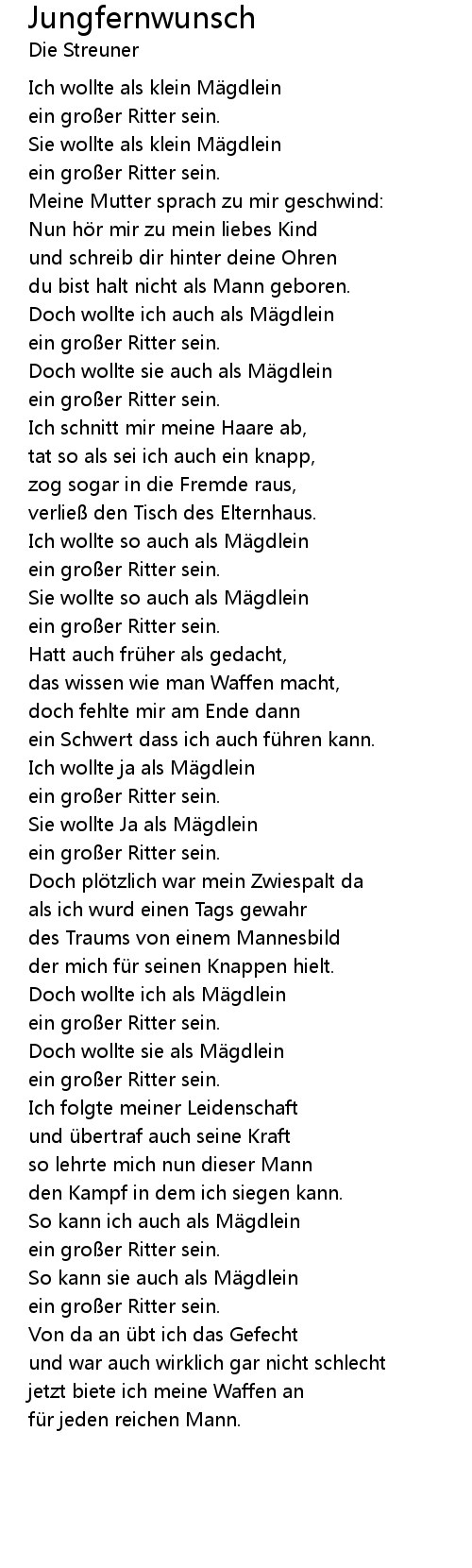 | Song | Jungfernwunsch |