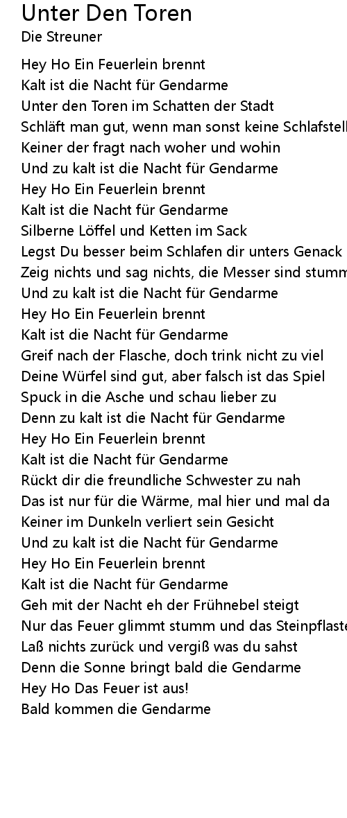 | Song | Unter Den Toren |
