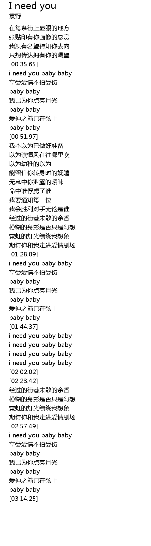 | [00:36.40] | i need you baby baby |