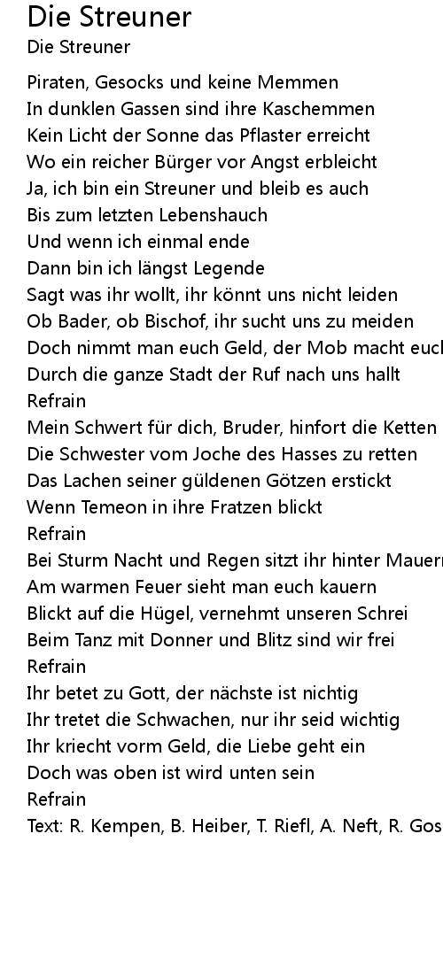 | Durch die ganze Stadt der Ruf nach uns hallt | |