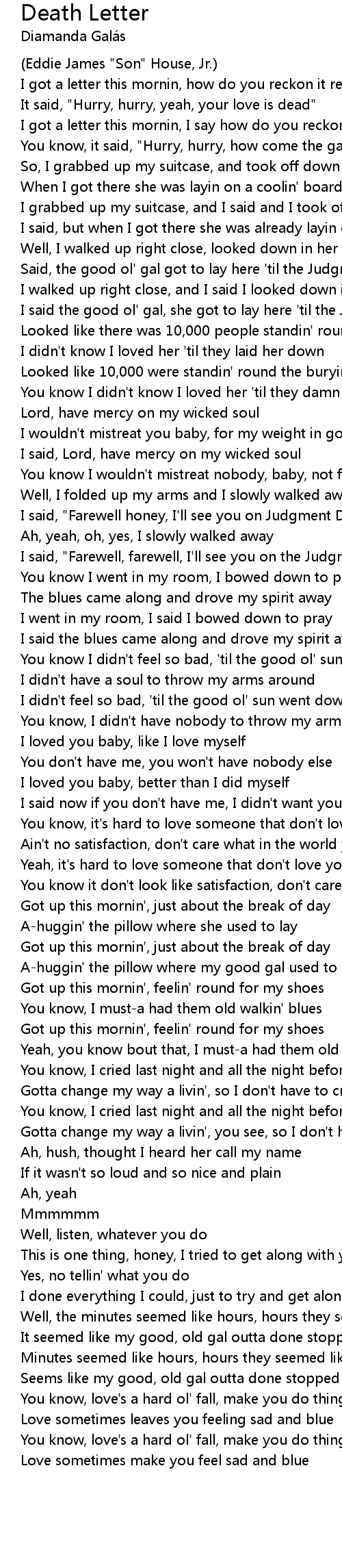 It said, "Hurry, hurry, yeah, your love is dead" |