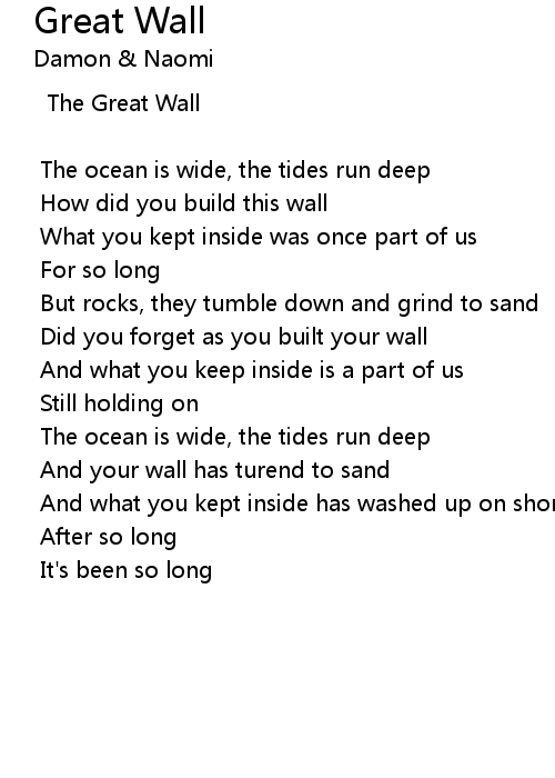 | Song | Great Wall |