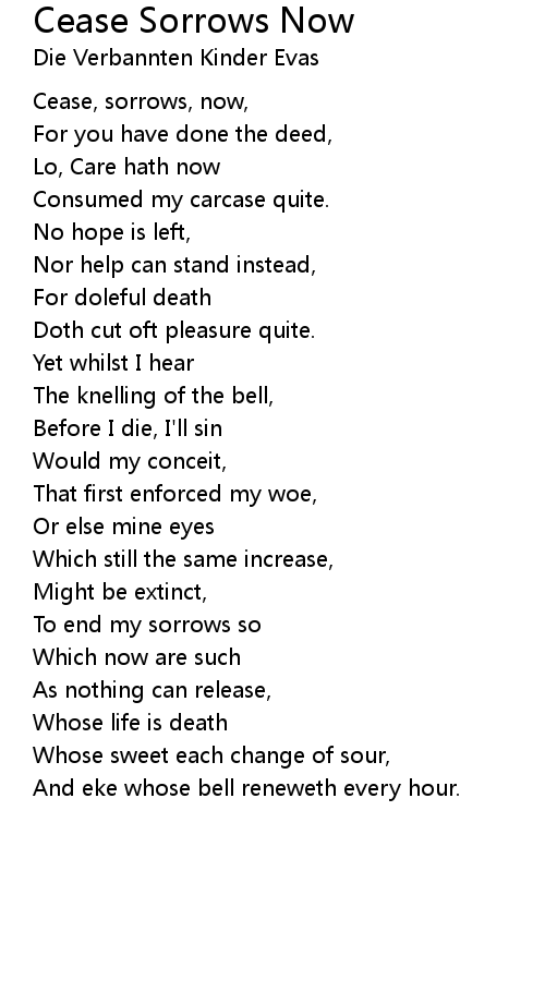 Cease, sorrows, now, |